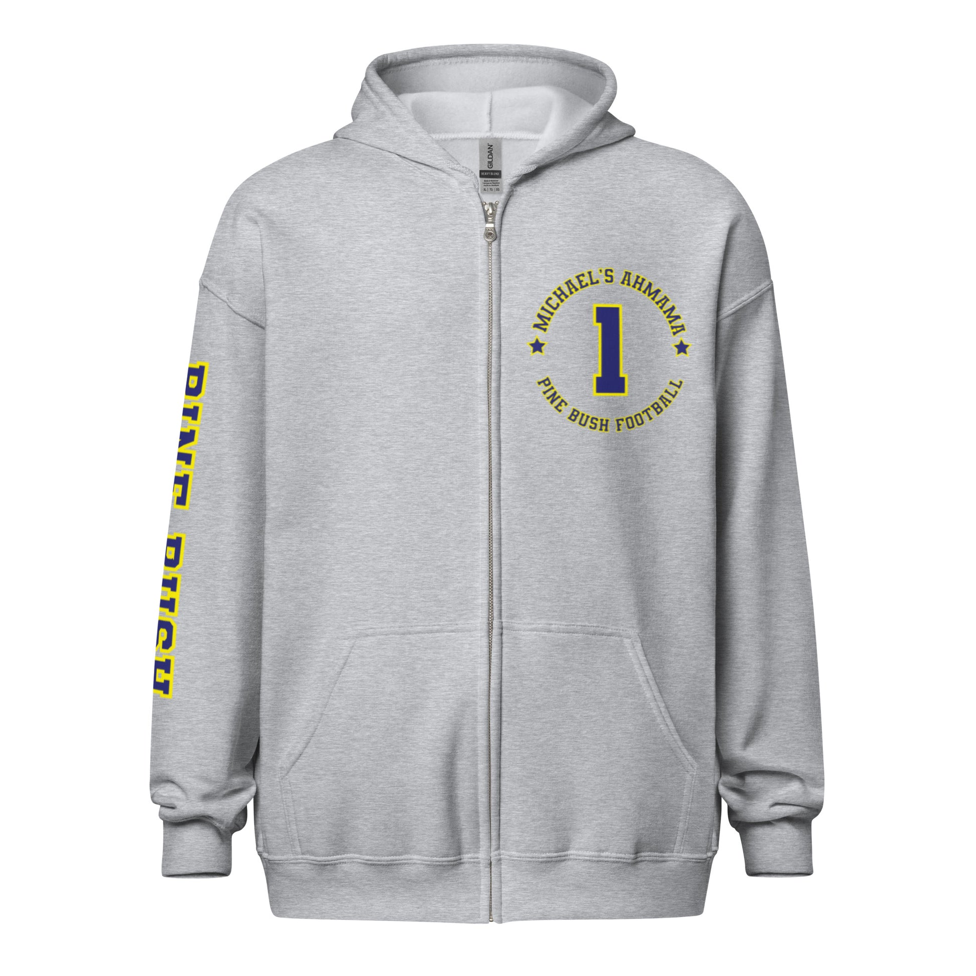 Designed with style and comfort in mind, this hoodie will quickly become your new favorite. It’s made from soft fleece inside and outside, with a sturdy metal zipper, convenient front pockets, and a hood with color-matched drawstrings.